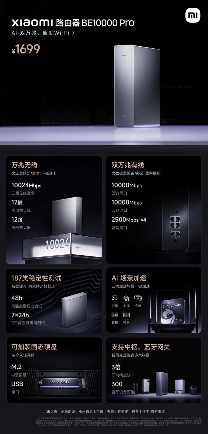 小米路由器 be10000 pro 正式发布并上市,支持 ai 双万兆及 wi-fi 7,售价 1699 元。