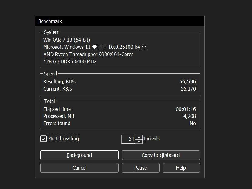 win rar也是压缩软件的代表产品,它最高只支持到64线程。