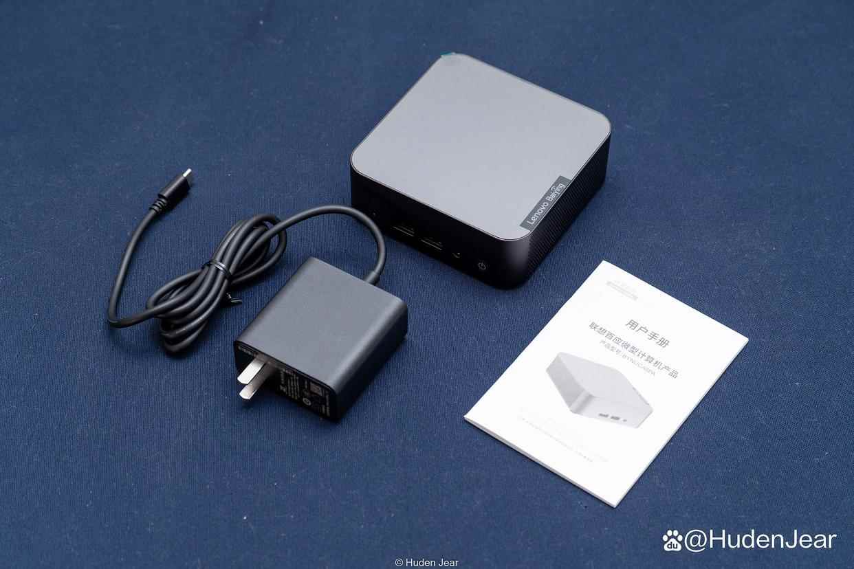 开盒,内容物很简单,联想百应应该是把能精简的东西全部精简了,配件就一个电源,纸质材料只有保修卡和说明书