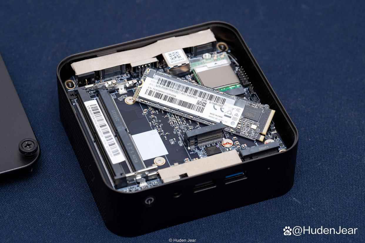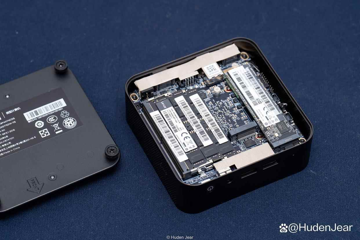 取下背板就能看到内部构造,这个主板结构基本和nuc一模一样,做工也不错。多了一个m.2 2242的接口,有一点点升级潜力