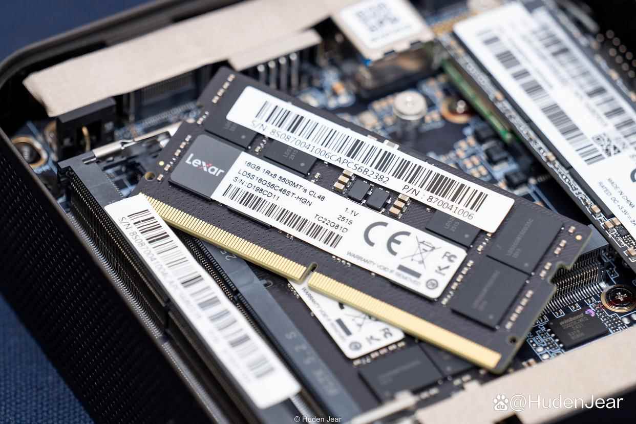 自带的内存是来自雷克沙的5600mhz 16gx2 cl48,总共32g,用来办公不可谓不奢侈。硬盘1tb,也是雷克沙的pcie4.0固态硬盘。wifi网卡也用最经典的方式叠罗汉放在固态硬盘下面