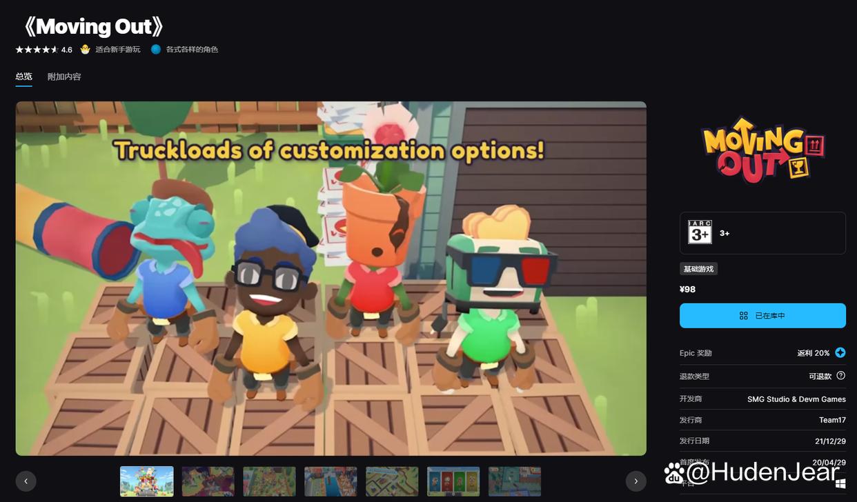 还有胡闹搬家,这个游戏是epic送的还挺好玩的,因为是lowpoly的画风,所以也不怎么吃性能,而且还有强制的垂直同步,120帧就到头。游戏内帧数也是接近100,可能因为分辨率太高了,如果电视分辨率低一点肯定能轻松跑满
