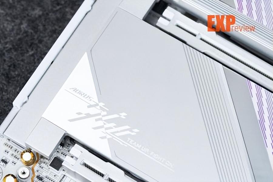 最明显的变化自然是配色从此前的银色+黑色变成了以白色为主色调,所以名字也变成了超级冰雕,外观设计和超级雕较为接近,通过斜线纹理将所有散热装甲分割成三个层区,cpu供电主散热装甲上有大面积的rgb灯,南桥上方有一只aorus经典的雕型logo,南桥位置的散热装甲下方还配有氛围灯。此外这主板最显眼的地方就是上面有两pcie快拆键,它们分别控制上下两个pcie x16插槽,是首款采用这种设计的主板。