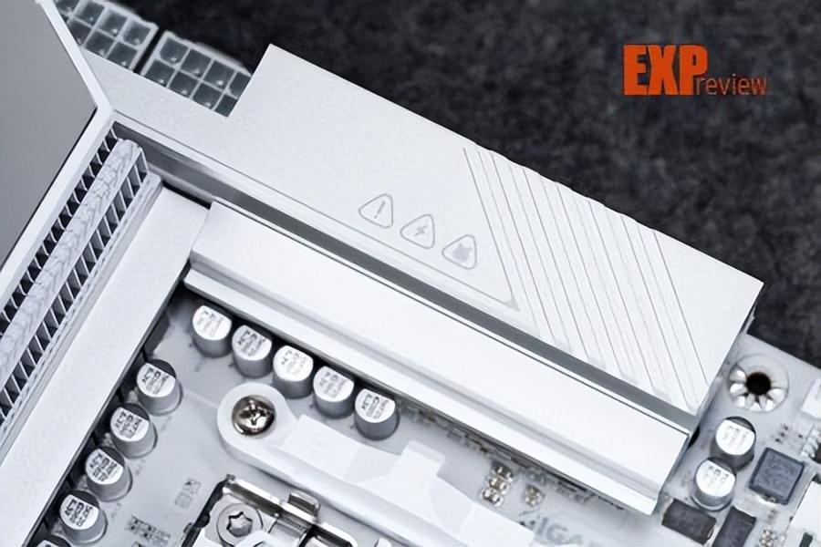 技嘉为这套豪华的vrm供电配备了升级款epic vrm散热器,一边是鳍片式散热器一边是铝挤式散热器,结合了鳍片式散热器表面积大和铝压式散热器热容高的优点,两部分用一根热管相连,技嘉表示这种散热设计表面积是传统方案的10倍。热管直接接触mos芯片,并使用了12w/mk的导热垫,可以更快的把供电元件的热量传递到散热器上。