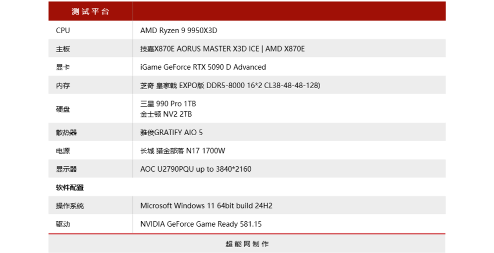 技嘉x870e超级冰雕主板上最让人好奇的莫过于它所具备的x3d turbo 2.0功能,为了测试这功能到底能带来多大的提升我们 使用了amd目前的旗舰处理器锐龙9 9950x3d,内存方面则找来芝奇 皇家戟 expo版 ddr5-8000 c38 16*2套装内存,显卡使用igame geforce rtx 5090 d advanced。