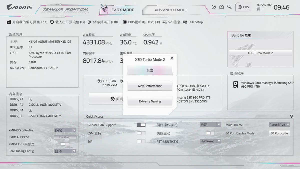 开启x3d turbo 2.0很简单,在bios的简易界面右侧就有,当然在高级界面里也有对应选项。