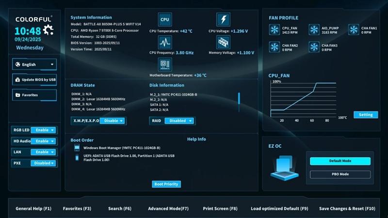 七彩虹战斧b850m超级黑刃主板搭载的moore图形化bios,使用起来更加直观,绝大多数功能在首页就可以直接设置调节,也更加美观。