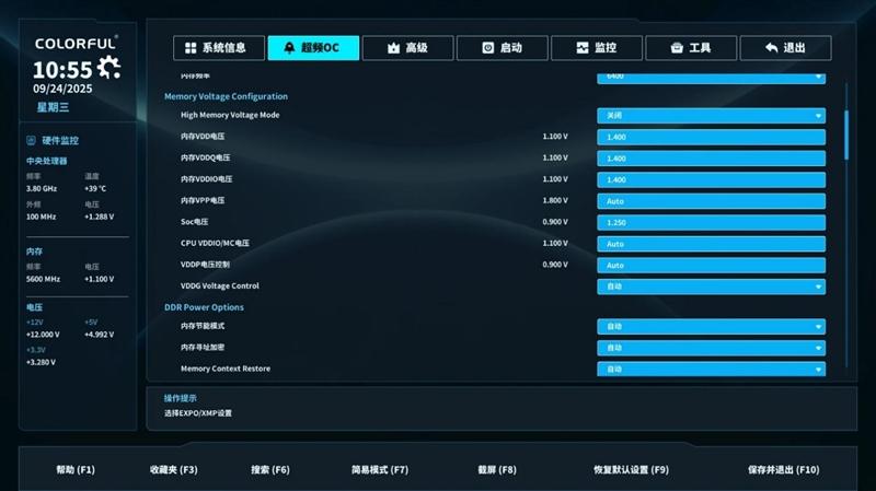 内存电压、频率、时序等都可以进行手动设置,方便专业超频玩家发掘内存超频潜力。