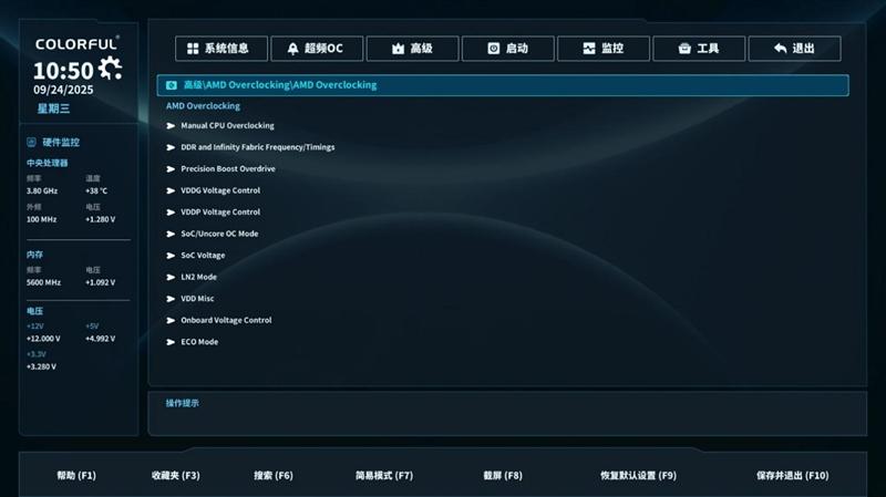 在高级页面的最下,是amd超频功能入口,进入时会提示超频风险。