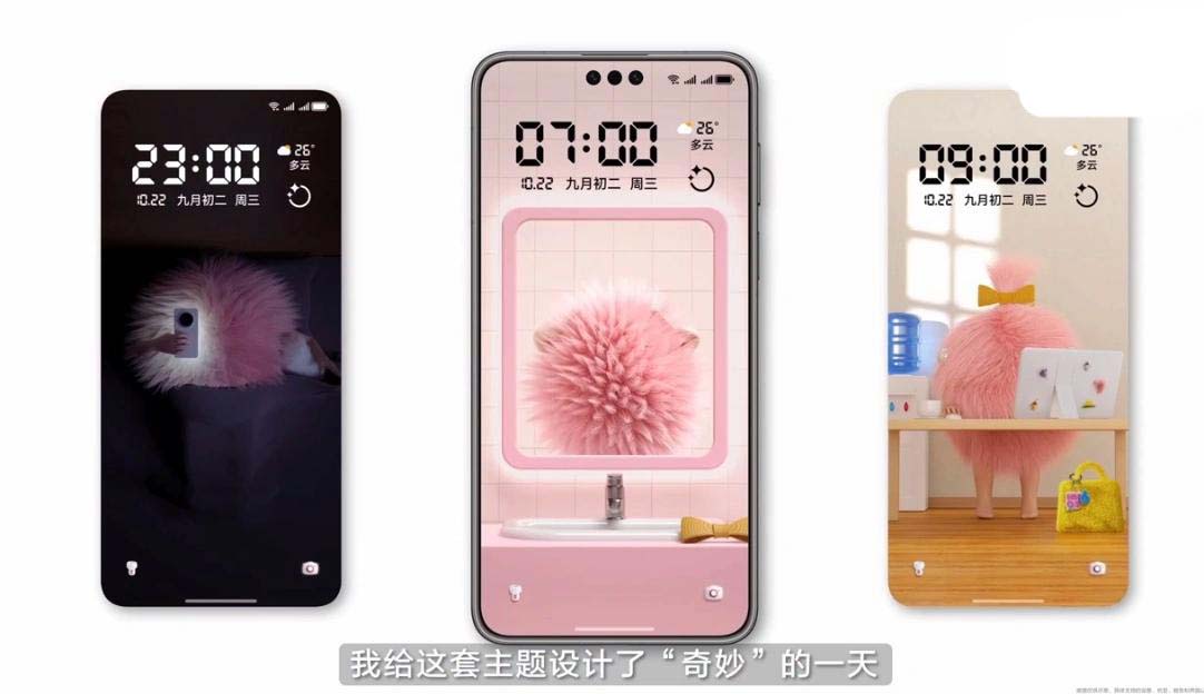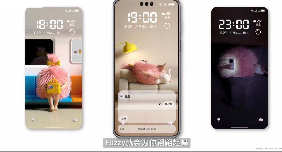 鸿蒙 6 的毛球系列主题可呈现“奇妙”的一天,每天不同时段展示不同的锁屏,用户还可以通过语音和毛球交互。
