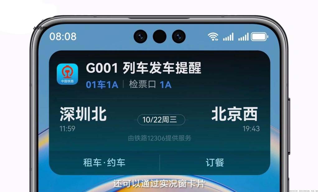 比如,12306 app 可在实况窗显示更多车票信息,并且下拉可进行交互。