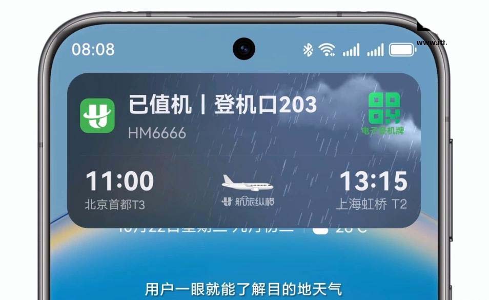 航旅纵横可显示航班目的地的天气、赏月座位等信息,还能通过手表、耳机进行航班提醒。