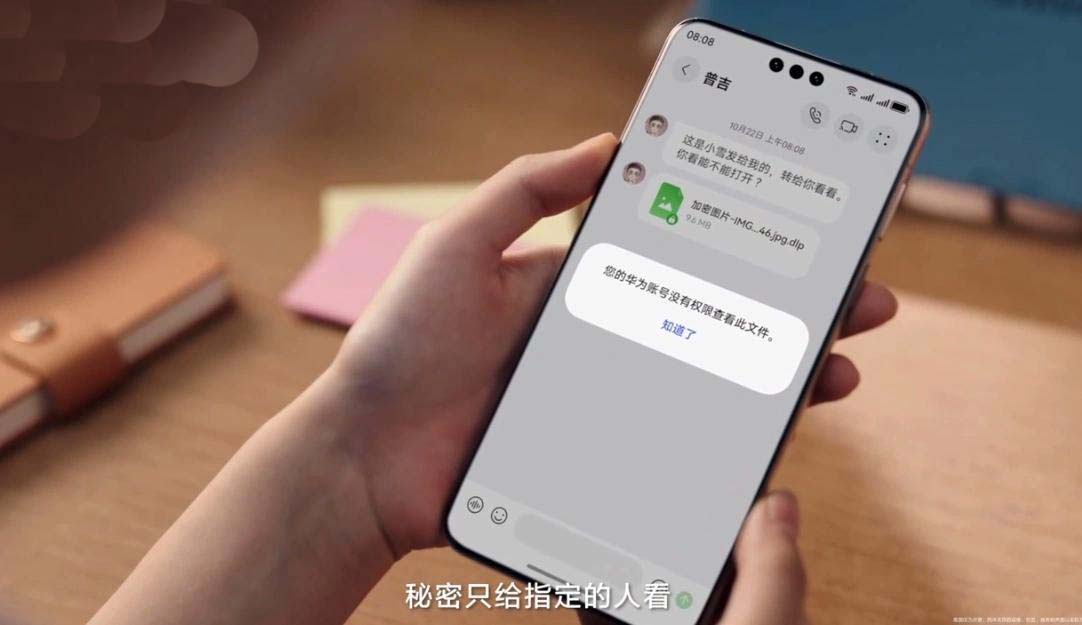 鸿蒙 6 还支持加密分享,用户可将文件分享给某个指定的人,其他人无法打开;也可以设置只能查看一次,阅后即焚。