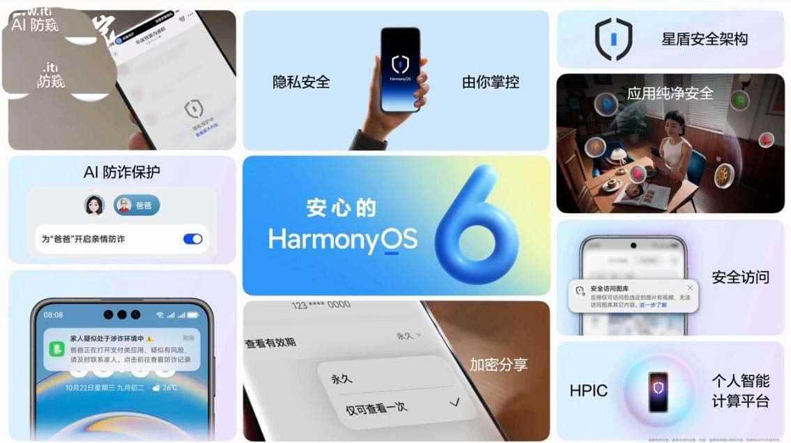 鸿蒙 6 的小艺还可以更好地帮助视障人士,提醒网 约车来了等信息;远程守护增加了积分奖励和小游戏;搭载鸿蒙 6 的路由器可拦截更多恶意网站、网页和弹窗。
