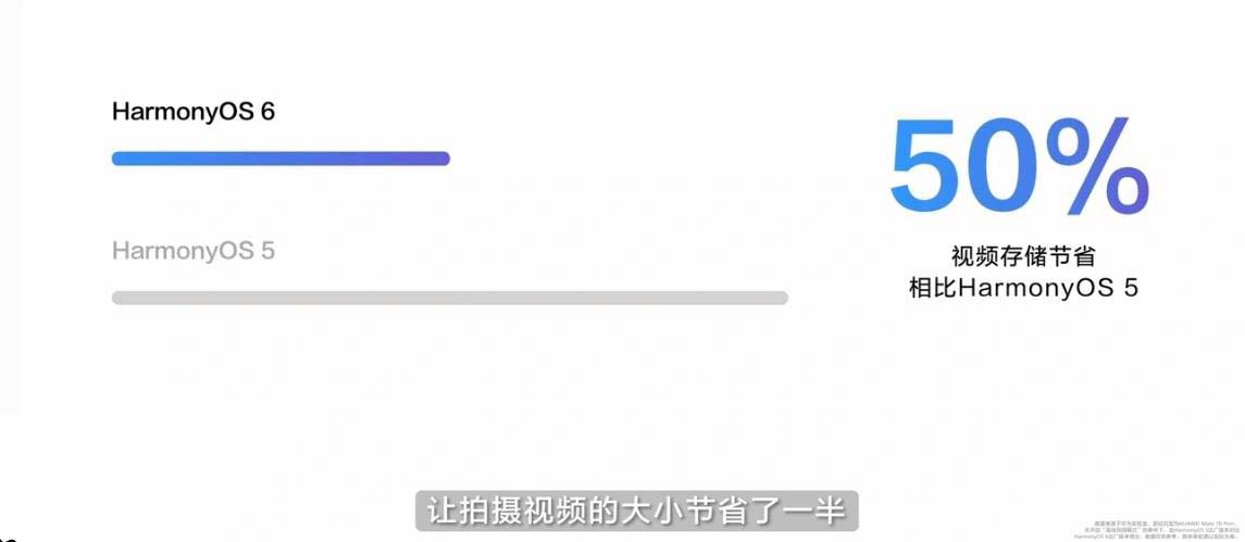鸿蒙 6 方舟存储引擎可让视频拍摄的存储大小节省一半(相比鸿蒙 5)。