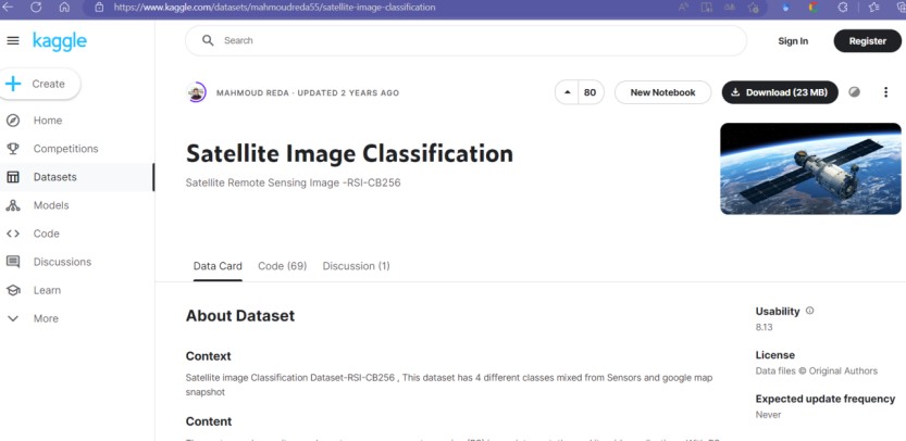 卫星图像分类数据集包含来自传感器和谷歌地图快照的大约5600张图像。它有属于4个不同类别的卫星图像。