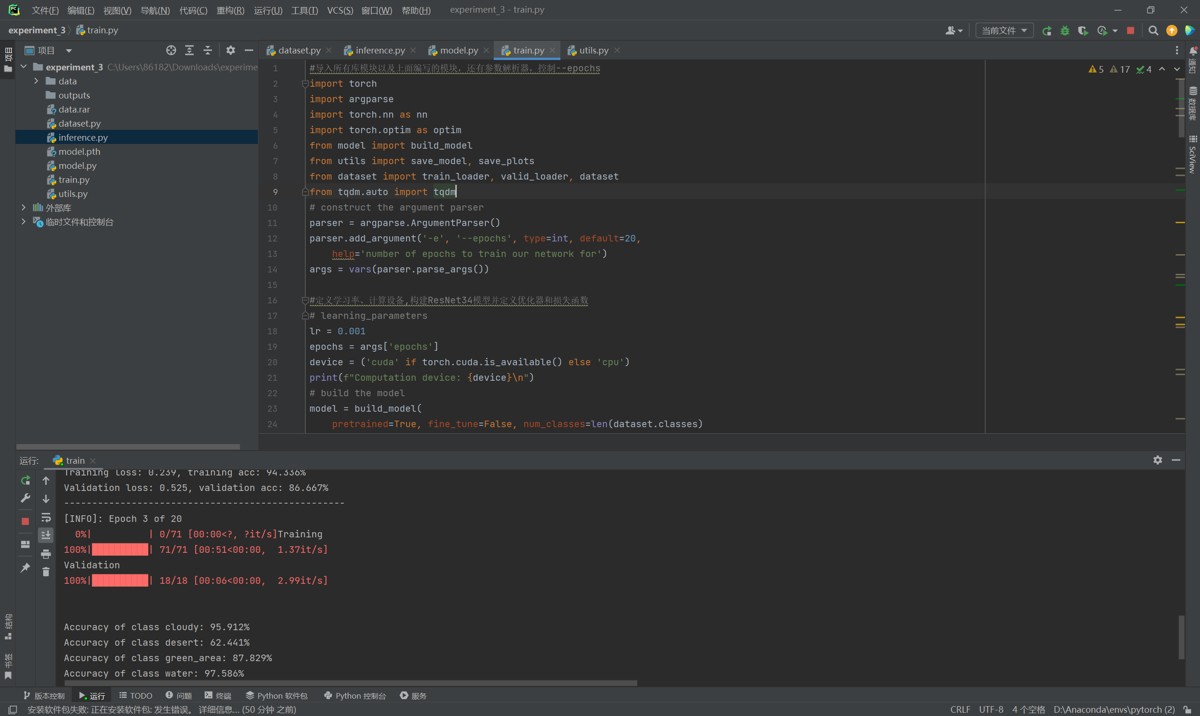 在pytorch框架下,实战kaggle比赛:卫星图像分类(satellite remote sensing image -rsi-cb256),利用pycharm调试运行代码。