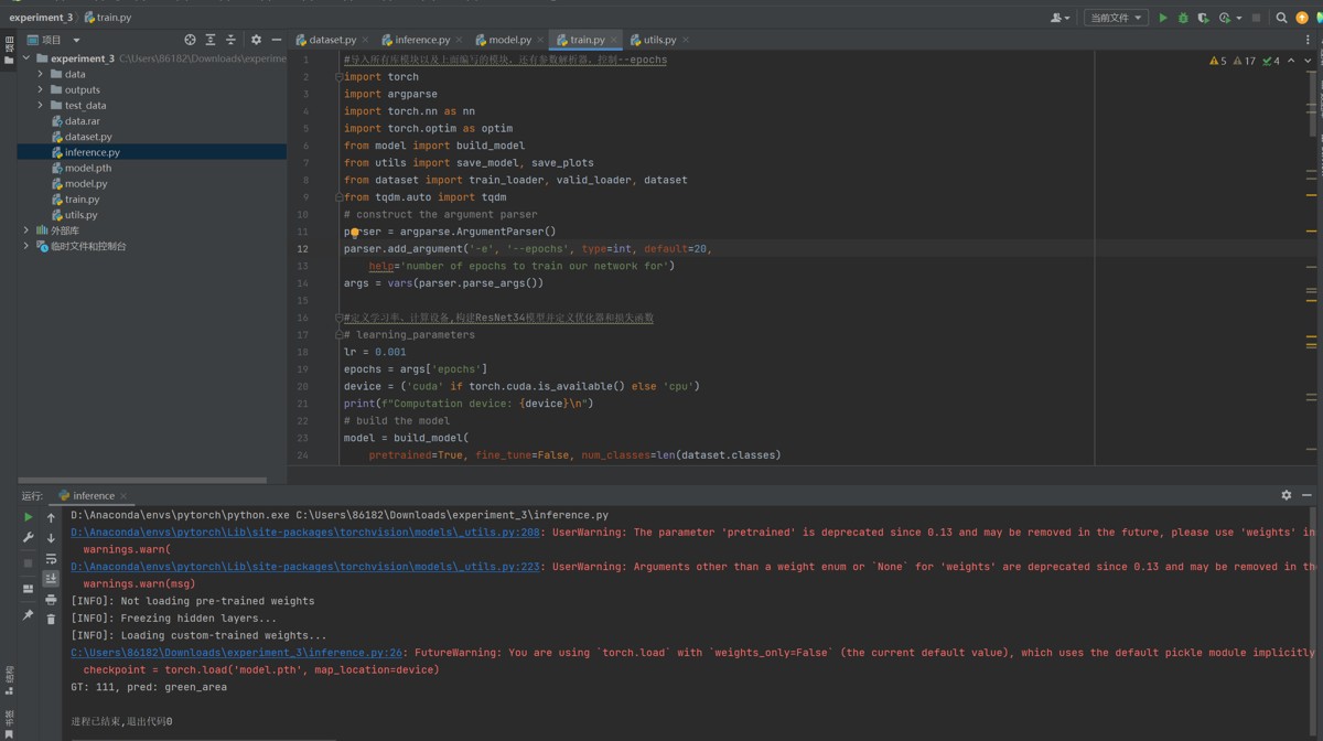 )导入所有库模块以及上面编写的模块,还有参数解析器,控制--epochs