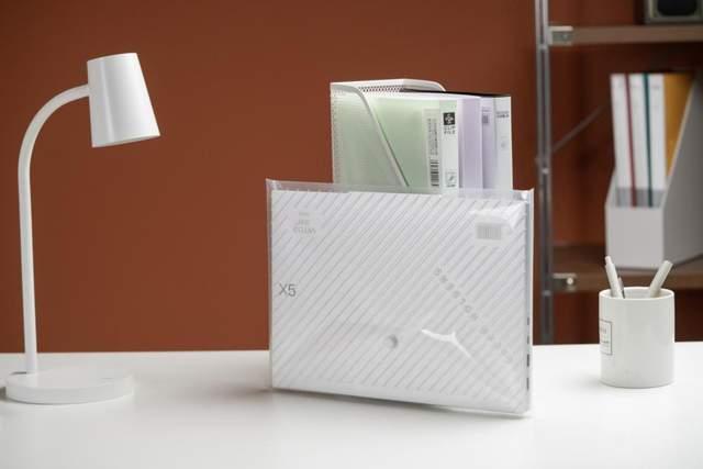 同时,慧天x5机身厚度控制也不错,数据显示薄至16.55mm,用户甚至可以将其放进文件透明袋中,这也说明了慧天x5不仅非常轻,而且携带起来非常方便,外勤人员带项目合同与设备时,无需同时拎着电脑包与文件袋,一个大一些的公文包就能装下,赶高铁、见客户时更灵活;放入普通商务背包侧兜时,不会挤压主仓的文件与资料。