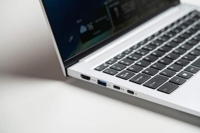 慧天x5的接口配置更是企业办公的省心担当,匹配了各种办公应用场景的差异化需求。机身左侧是2个全功能usb-c gen1、1个usb-a大口和1个hdmi视频口,右侧配备1个usb-a 大口、rj45网口、3.5mm音频口和锁孔,经典且全面的双usb-c +双usb-a组合,功能性拉满。