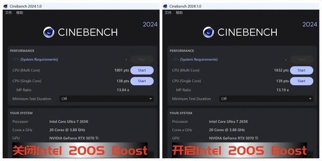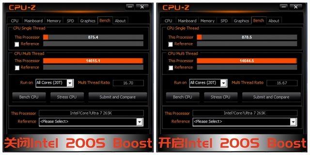 而通过一系列的软件测试来看,这颗装在z890 aorus elite wifi7 小雕中的intel core ultra 7 265k处理器在开启intel 200s boost后都获得了不同程度的单核以及多核的性能提升。