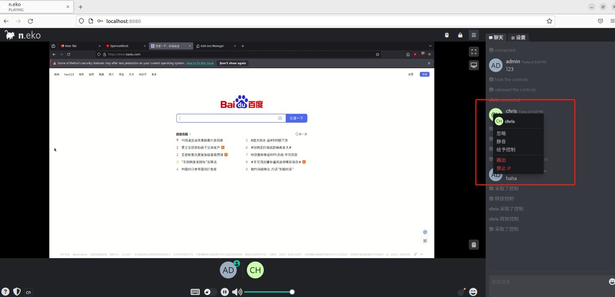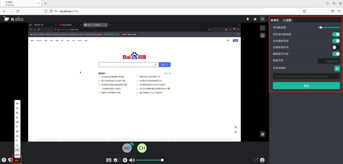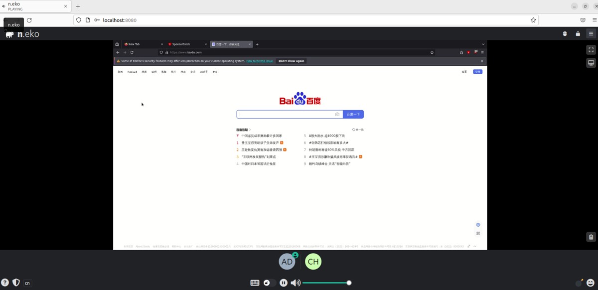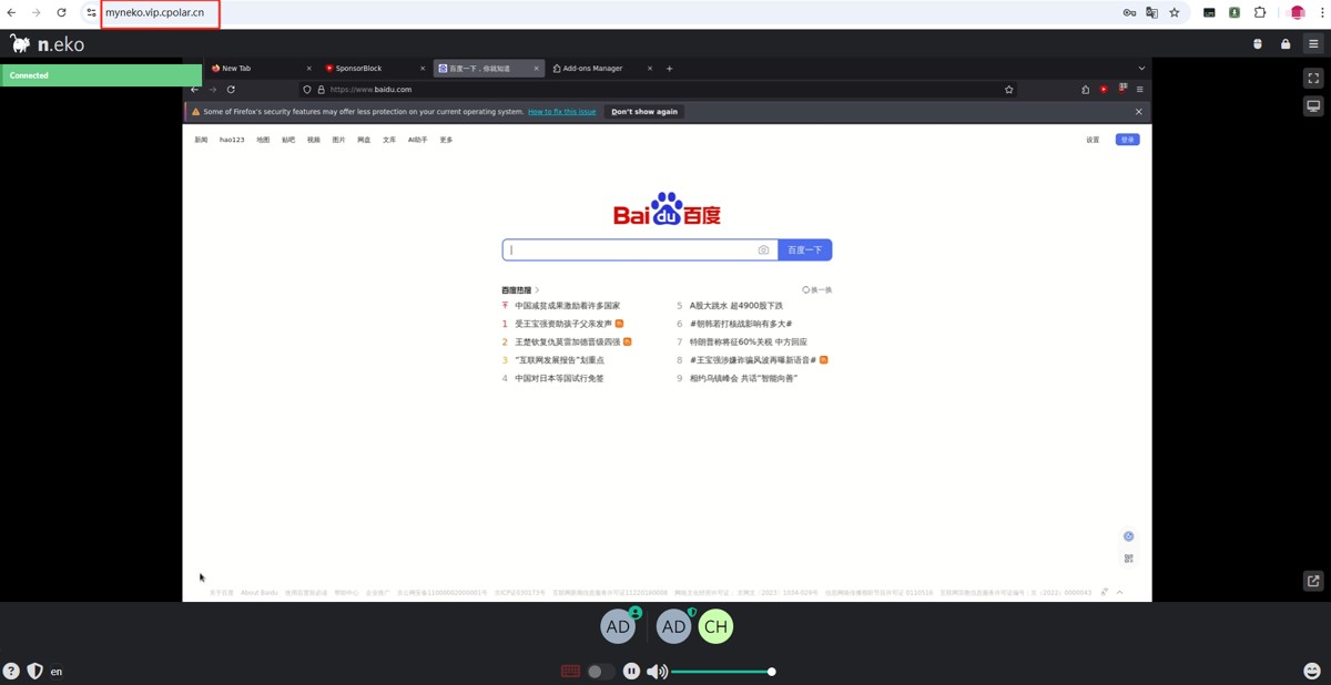 如下图所示,成功实现使用公网地址异地远程访问本地部署的neko浏览器。