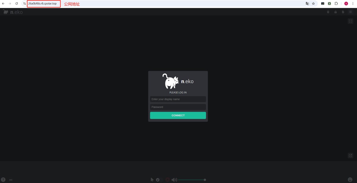 而 neko 和 cpolar 结合后,这个问题就解决了。cpolar 能把本地的 neko 服务安全地暴露到公网,异地用户通过公网地址就能直接访问,既保持了实时同步的低延迟,又不用费心配置公网 ip,特别适合需要跨地域协作的小团队。