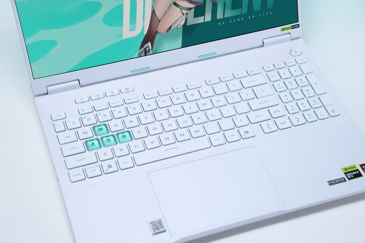 b面是16英寸2.5k分辨率屏幕,165hz高刷新率+ 100%srgb广色域,支持双显三模,满足日常使用、游戏娱乐和照片处理没什么问题。上边框内置摄像头,下边框做了收窄处理,沉浸感优于前代,支持180°开合方便多人分享屏幕。c 面设计兼顾实用性与颜值,顶部排列独立功能按键,wasd 按键采用透明键帽设计,透光均匀且耐磨。全尺寸光标按键+ 1.7mm键程键盘,敲击反馈清脆,长时间游戏或办公不易疲劳。触控板240hz触控采样率,定位精准,日常操作可无需依赖鼠标。