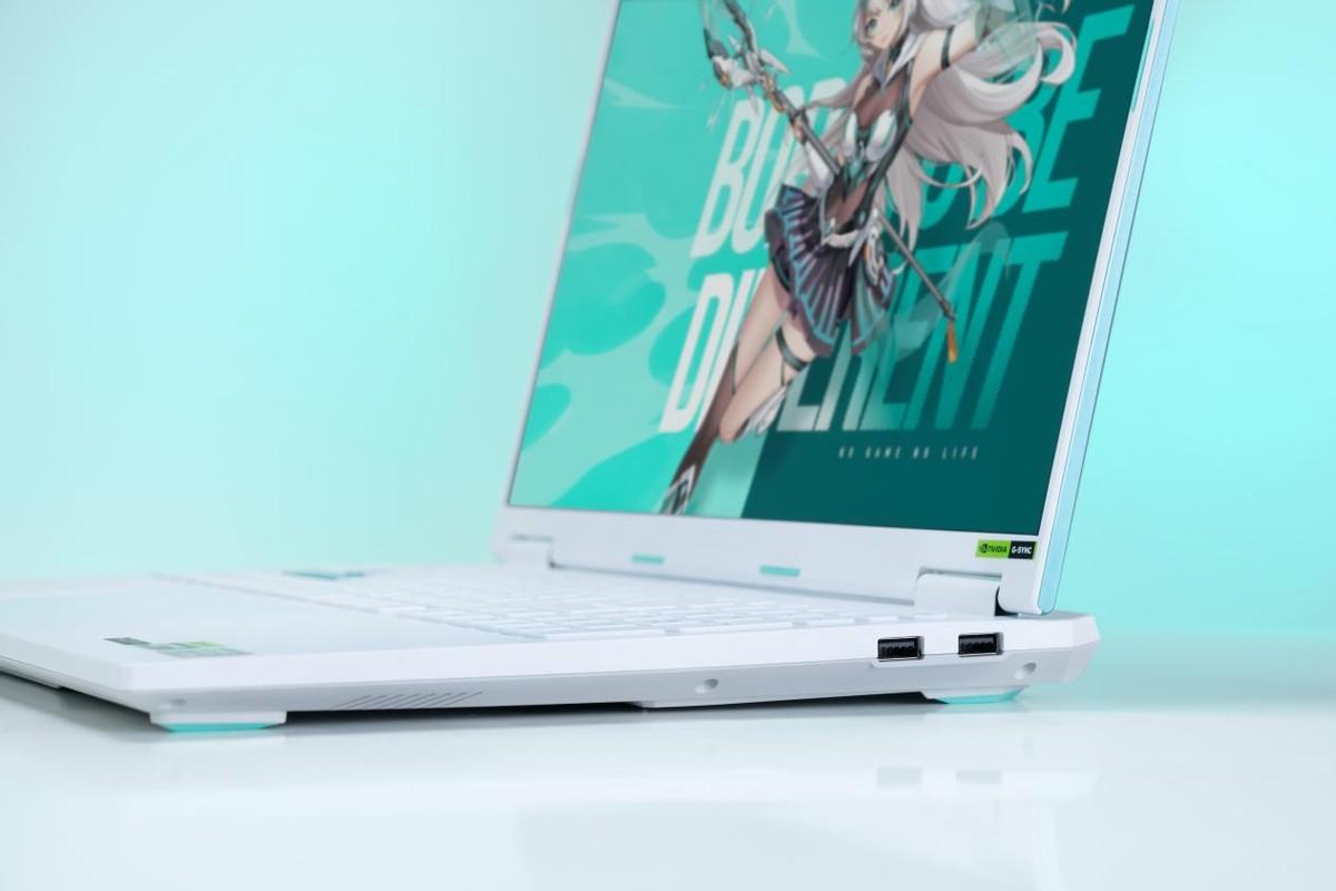关于天选6 pro锐龙版的机身造型大家应该很熟悉了,这里牛叔就重点谈谈该机在机身设计上的优异之处——即“相对较轻的便携性”和“青色潮流造型”带来的高颜值卖点。如图所示,本次牛叔实测的魔幻青版本,青色顶盖+白色机身,好看且清爽,这也是天选6 pro锐龙版具有特色看点的外观版本。细节上,机身采用全新不对称斜切设计,a面梯形切割搭配“tx”logo,辨识度拉满,金属顶盖触感细腻且坚固耐用。尾部出风口延续机甲镂空设计,不仅视觉效果酷炫,更能提升散热效率,避免了低价位游戏本常见的“粗糙感”。机身最薄处仅为17.9mm,而2.3kg不到的重量对于16英寸游戏本来说算是便携性很不错的,搭配pd充电器外出携带更轻松。