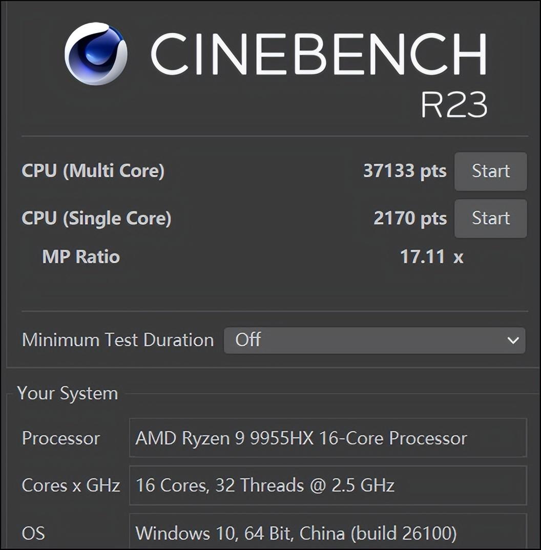 从跑分成绩中大家可以看到,锐龙9 9955hx的威力相当强劲!在cinebench r23多核测试中,天选6 pro锐龙版的成绩突破了37000分,在烤机功率一样的情况下轻松超越了同为16 大核32线程规格的锐龙9 7940hx,同时也达到了目前移动平台第一梯队的性能表现,应对各种专业、重度应用可以说都不在话下。