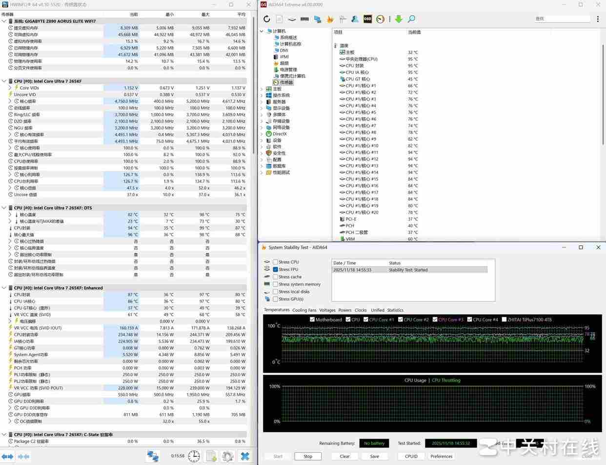 intel® 200s boost这项技术特点是对于处理器负载功耗提升在可控范围之内,没有因为盲目通过拉高功耗频率来提升性能,从而摒弃酷睿ultra 200s系列最大的特色能效比,是一项非常正确的提升性能的一键超频功能,我们下面就来进行拷机测试,看一看intel® 200s boost开启前后的负载变化。
