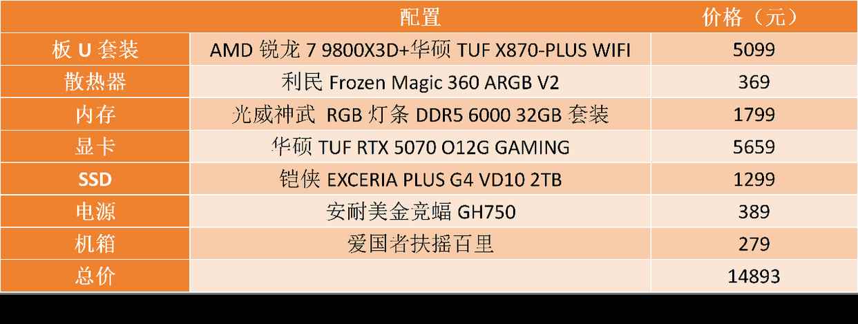 有人说内存、ssd已经涨价不少,这个年底已经不适合装机了。站长却不这么认为,因为从目前来看,这波存储的涨价还将持续,明年不仅内存、ssd价格更高,而且还有很大几率带动显卡价格的上涨,对刚需用户来说现在依然可以认为是短期内的低点。如果你想要打造一款高性能游戏主机,可以考虑一下这套锐龙7 9800x3d配置。