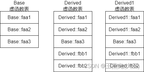 }(2)纯虚函数,在派生类中必须要实现,否则派生类也是抽象类,不能创建对象;虚函数没有这个要求。