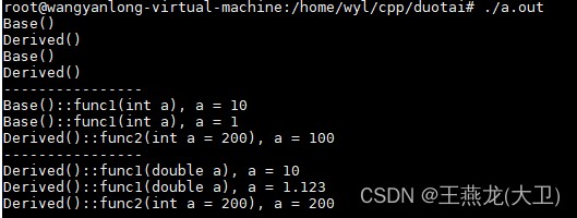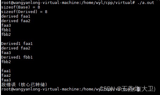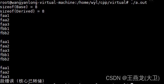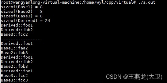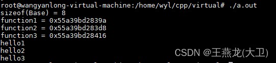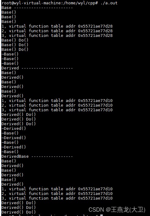 }运行结果如下,从打印信息来看,虚函数表的地址是 0x55f2dd2dbd58。