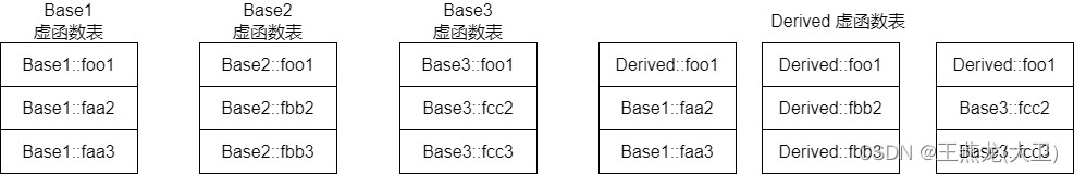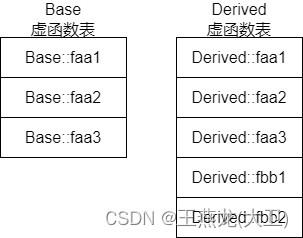 }一个类的所有对象共用一张虚函数表,所以每个对象的第一个 8 字节里边存储的数据内容是相等的,都是虚函数表的地址。虚表中保存的是函数的地址,而函数又属于代码段,代码段是共享的,所以一个类的对象共享虚表。