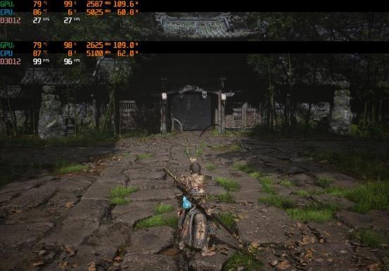 接下来看看dlss 4性能测试,dlss 4多帧生成是rtx 50系独显的独享功能,也是rtx 50系独显在游戏性能上最大的升级点之一,实测来看。rtx 5060在3dmark dlss中的基准测试采用的是2.5k分辨率,原生33fps,开启dlss 4质量之后达到了142fps,帧速达到了原生5倍左右,效果还是很明显的。《赛博朋克2077》在2.5k分辨超级画质下原生帧速51fps,开启dlss 4质量之后达到了158fps,算是电竞级表现了。再看看《黑神话:悟空》,100%影视级画质原生帧速27fps,开启dlss 4加持下,游戏帧速暴涨到了96fps,从“不流畅”提升到了百帧左右,效果夸张。从这里来说,dlss 4可以助力rtx 5060战未来。