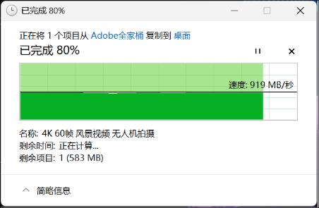 利用全功能usb-c进行高速文件传输,速度达到了牛叔硬盘盒上限1gb/s左右。