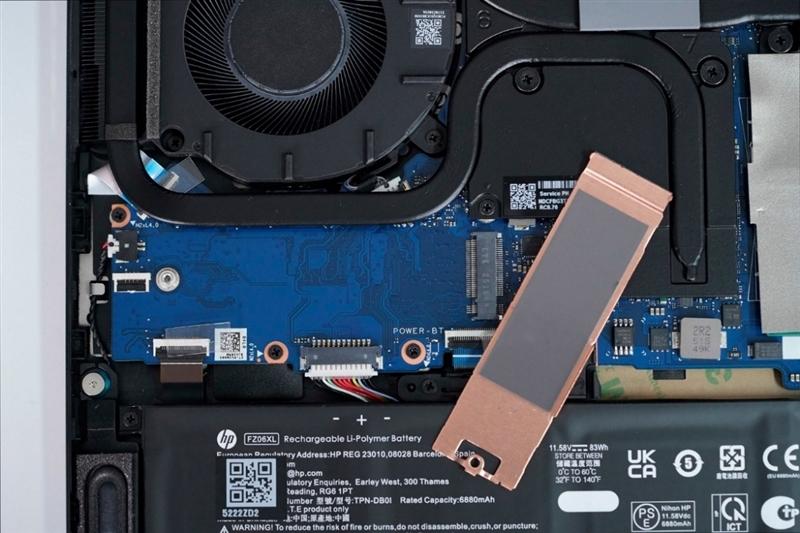 暗影精灵11右侧的ssd安装位置预装了一条来自铠侠的pcie 4.0 ssd,容量为1tb,并配备了纯铜散热片。