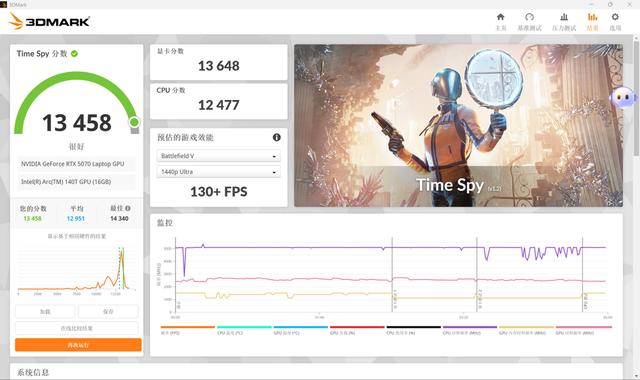 在酷睿ultra 9 285h的协同工作下,荣耀magicbook pro 16 2025 hunter的图形性能得到充分释放。在3dmark time spy基准测试中,它取得13648分的亮眼显卡分数,这一成绩大幅超越上一代满功耗版本的rtx 4070笔记本电脑gpu(11609分),性能优势相当明显。