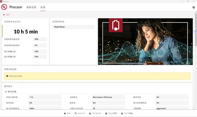 在“智能模式”和“最佳能效”、集显模式、50%屏幕亮度以及飞行模式下,我们通过ul procyon的“本地视频播放”场景来测试,最终荣耀magicbook pro 16 2025 hunter取得10小时5分的亮眼成绩,表明其能够满足一天移动办公的需求。