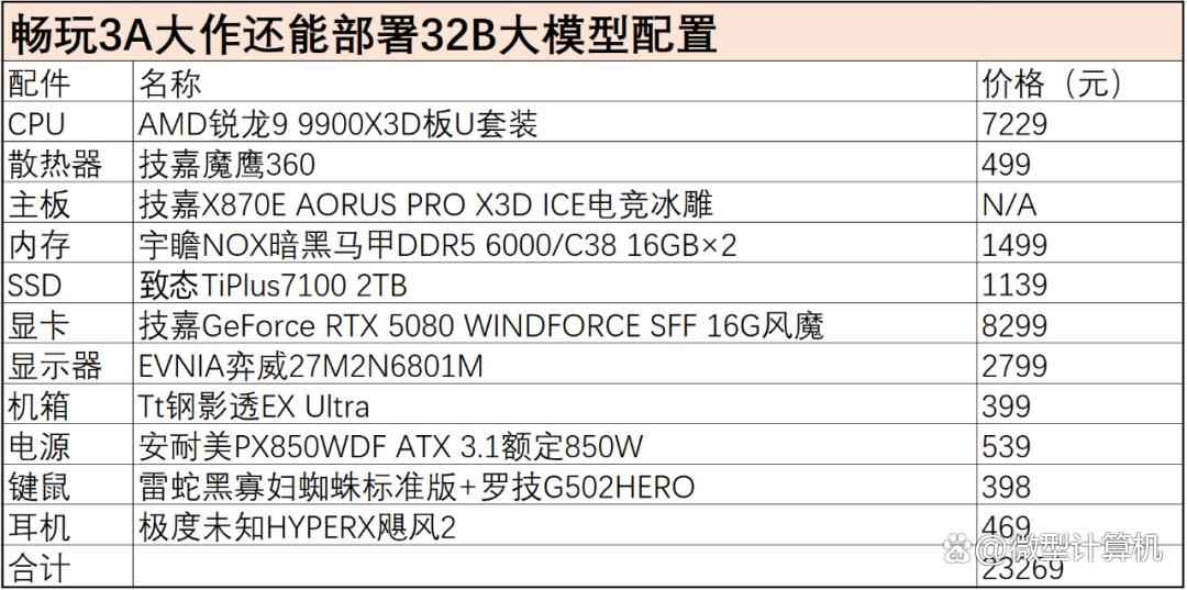 为兼顾3a游戏大作的流畅运行与32b模型的本地部署需求,我们将重点放在了处理器与显卡两大关键硬件。其中,锐龙 9 9900x3d作为最新一代高端游戏处理器,采用zen 5微架构,配备12颗高性能核心。这些核心可同步承载游戏中的图形渲染、物理模拟及 ai 计算等多线程任务,效率拉满。该处理器还拥有128mb l3高速缓存,l2+l3总缓存容量达 140mb。如此巨大的缓存能够减少数据访问延迟,尤其在复杂的游戏场景中,可有效提升帧率稳定性,带来更流畅的游戏体验。