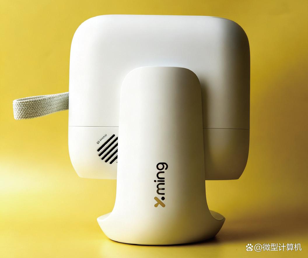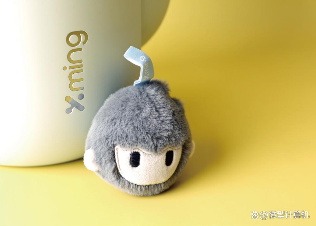 除了色调外,小明q6还有出色的手感和细节——它的机身外部采用的是亲肤无漆工艺,摸上去有点像磨砂材质,虽然没有烤漆工艺那样的光滑感,但是它却很细腻且不沾指纹。机身两侧设计有“xming”金属铭牌,小小的一块却很精致,有点像首饰上的刻字,瞬间把质感提升了。在我看来最有意思的是机身顶部那个“小揪揪”编织拎绳,5kg承重的尼龙绳,摸起来很结实,不仅能“拎起来说走就走”,还能挂各种潮玩挂件—比如labubu和jellycat等小玩偶。对了,小明q6还特别附送了一个毛绒玩偶,正好可以挂在拎绳上。