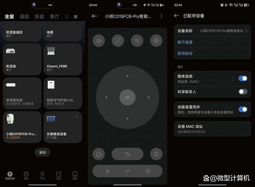 ▲登录了米家账号后,可以实现投影仪与其他设备联动。