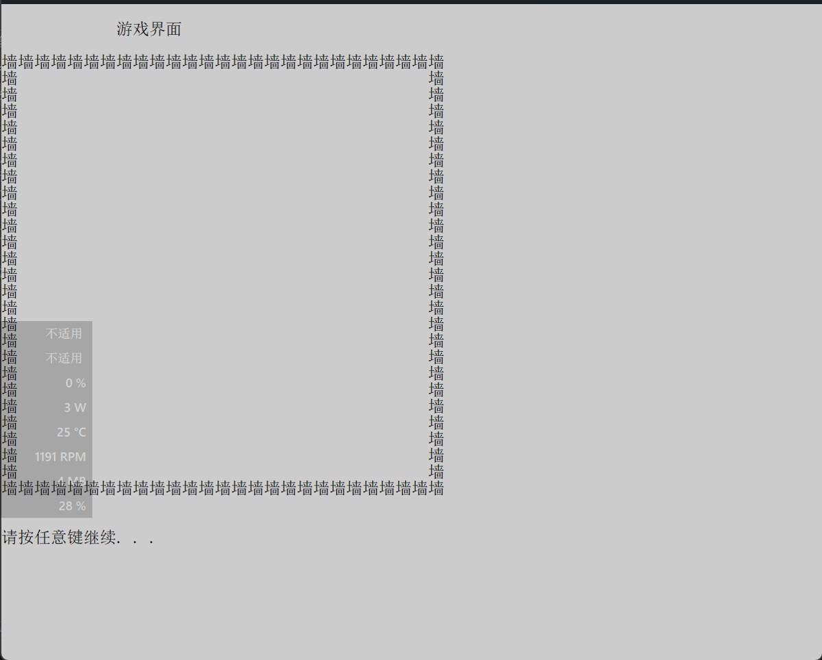 设置我们的游戏界面为25*25,加上边框长乘2,54*27,再加上提示,36长。凑个整