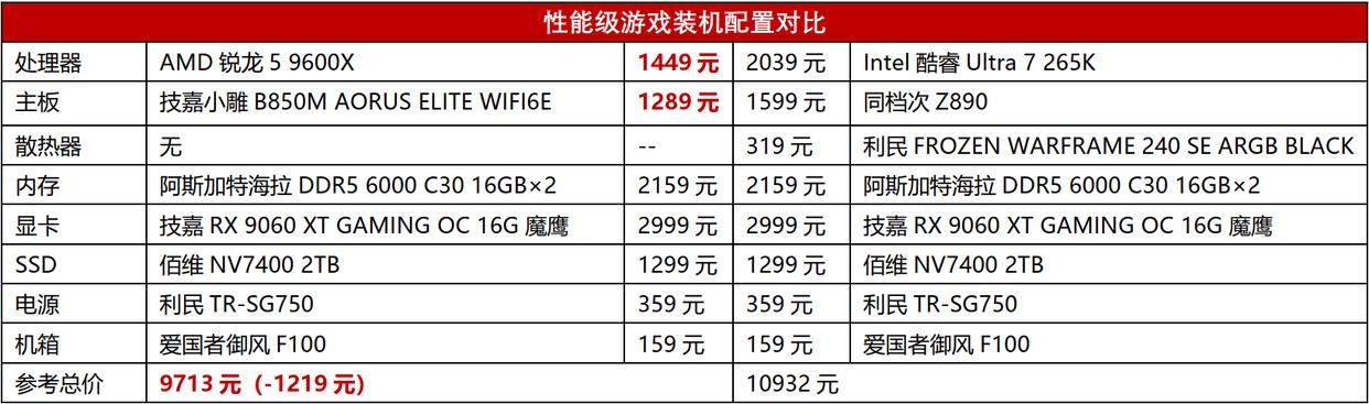 别看当前锐龙7 9800x3d和酷睿ultra 9 285k的价格都是3499元,但是由于前者满载功率明显更低,因此在对主板供电、散热器性能以及电源功耗上要求更低。体现在具体硬件上,就算锐龙7 9800x3d搭配atx b850,2000元以内就能拿下,而同级别z890至少要2899元,光这一项就多了900元。再加上风扇和电源上多出的花销,锐龙7 9800x3d配置总价便宜了1310元。
