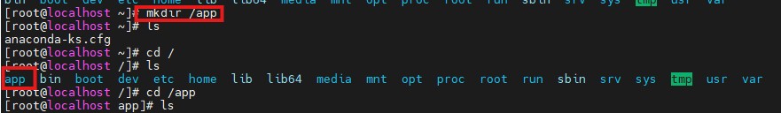 通过以下命令创建一个用于存放 prometheus 的目录 /app: