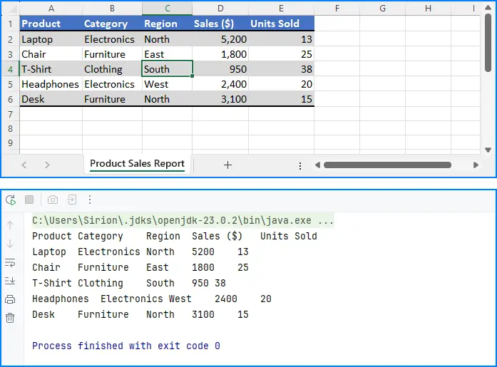 </dependency>如果我们需要读取整个表格的数据,可以通过遍历工作表中所有已用单元格来获取值。