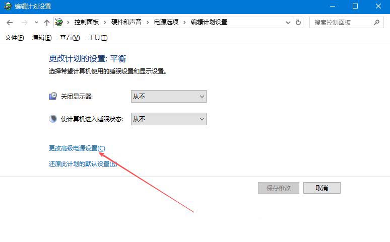 4、随后,在打开的界面中,点击打开下方的“更改高级电源设置”。