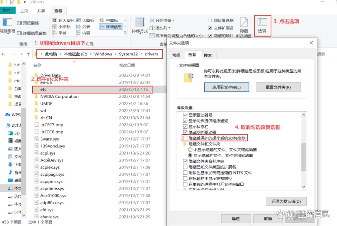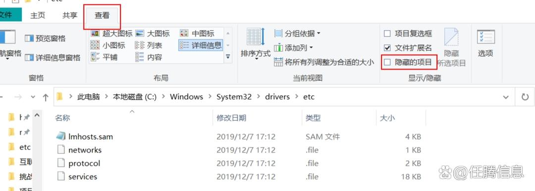 1、找到c:\windows\system32\drivers\etc点击查看找到隐藏的项目,点击勾选,查看是否有hosts文件。