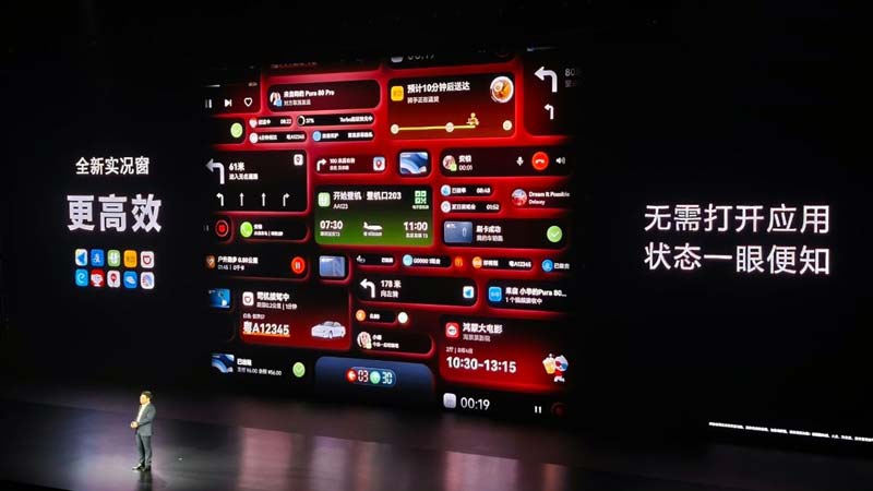 在今年 6 月的华为 pura 80 系列及全场景新品发布会上,鸿蒙系统的全新实况窗(取消了此前位于手机左上角的设定,与设备前摄融为一体)正式亮相,号称“无需打开应用状态一眼便知”。